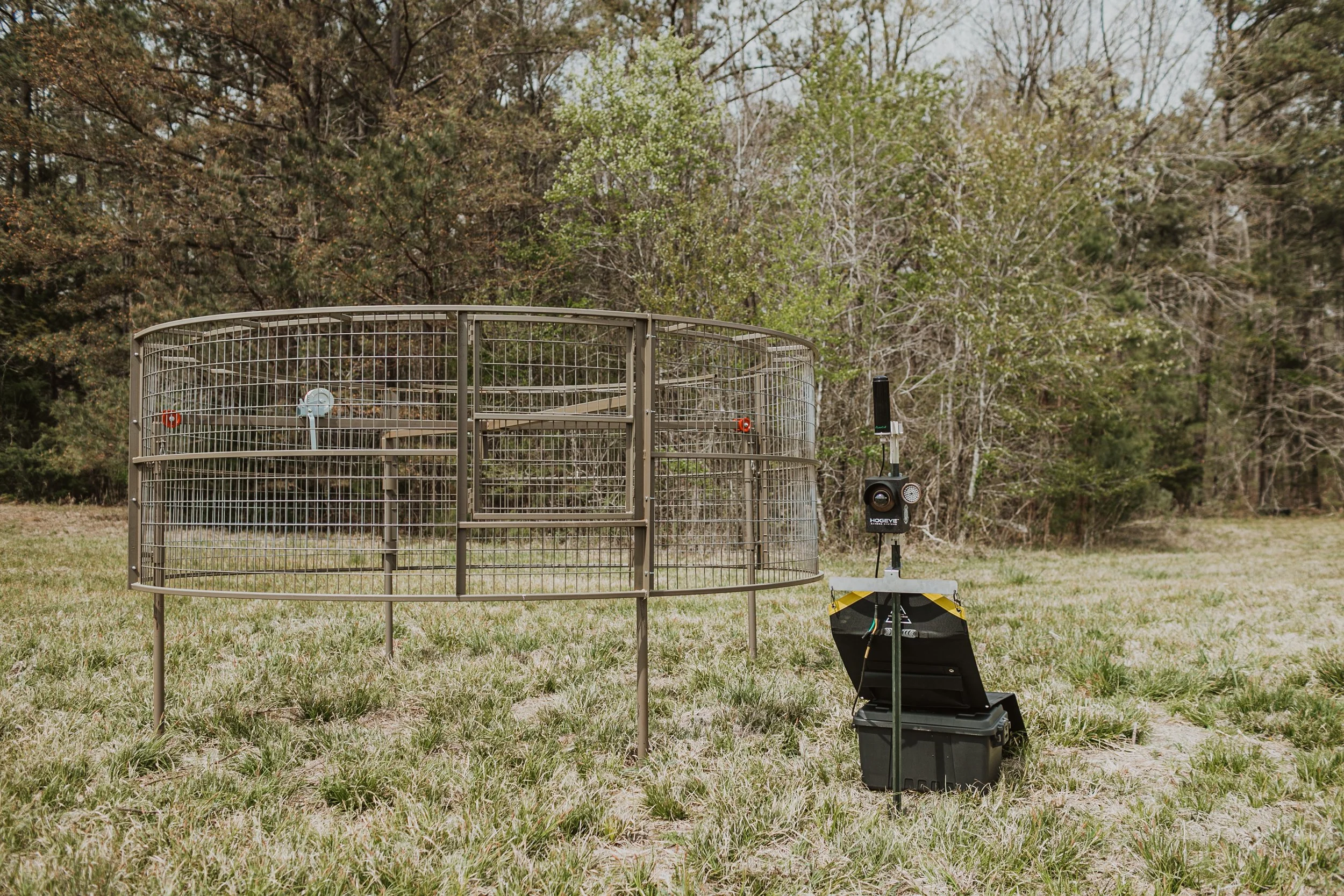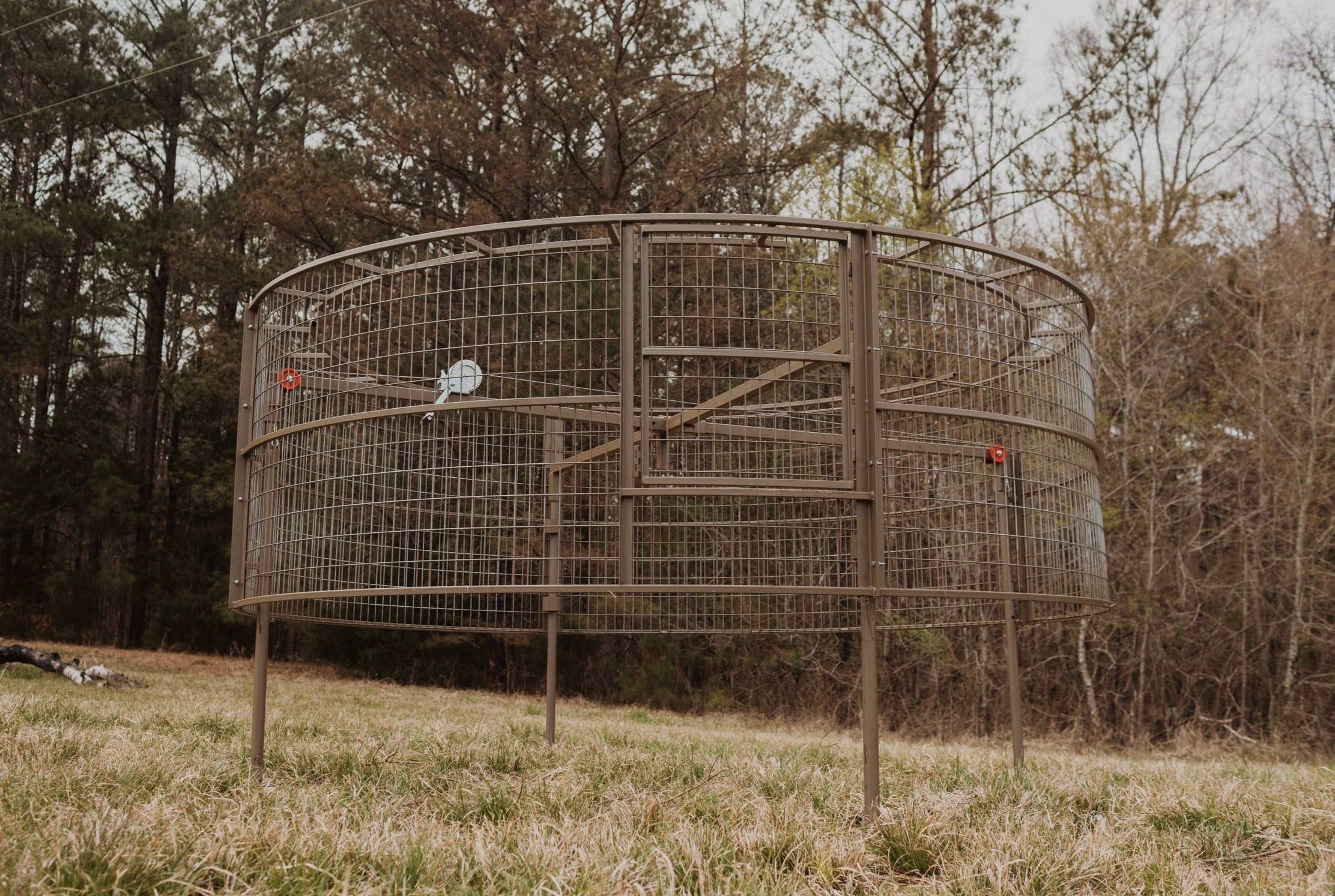 The Big Pig Drop Trap is a suspended drop trap that is 13 foot in diameter. It is operated by the Hogeye live stream camera system. The Big Pig Drop Trap can be observed and dropped remotely from anywhere with internet access. Cellular drop traps allow for ease of use and convenience when dealing with your hog problem.